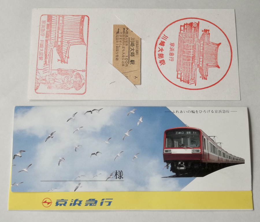- 平成元年 京浜急行電鉄 入場券 川崎大師駅 切符 硬券 未使用 年末 参拝記念 スタンプ 平成レトロ 京急三浦ビーチ