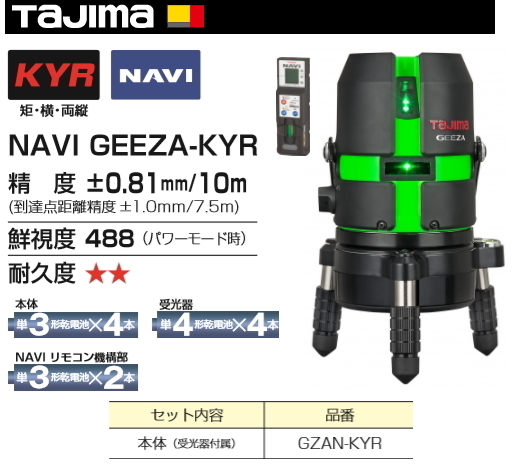 > タジマ レーザー 墨出し器 NAVI GEEZA-KYR GZAN-KYR 正規登録販売店 メーカー直送品 送料無料