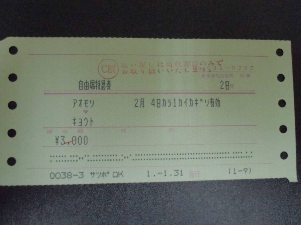 - ★「1.ー1.31」発行★ 青森→京都「自由席特急券」領収書3000円 旅行 汽車 列車 観光 切符(ヨン8保管)