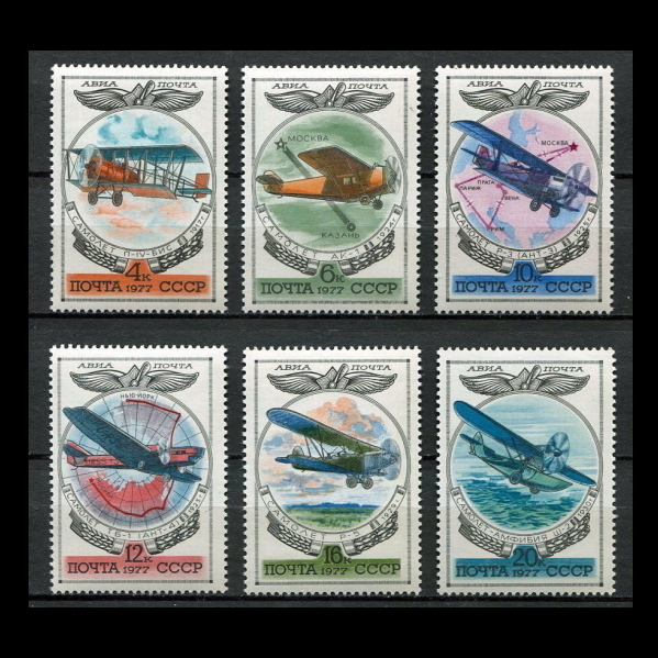 - ■ソビエト切手 1977年 飛行機の歴史 / 1917~30年 6種完 / ソ連・ロシア