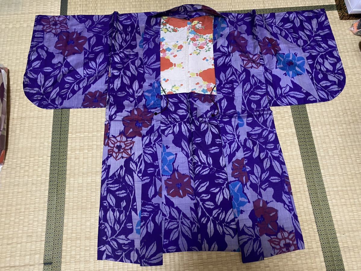 > 女性用 レディース 着物 昭和レトロ 昭和 レトロ ヴィンテージ ビンテージ 和装 和服 アンティーク着物 銘仙? シルク? 絹? 長羽織 羽織