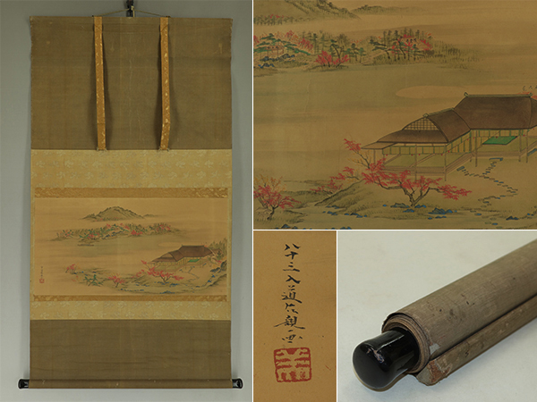 - 【肉筆】古画【秋景山水図】◆紙本◆合箱◆掛軸 v06185