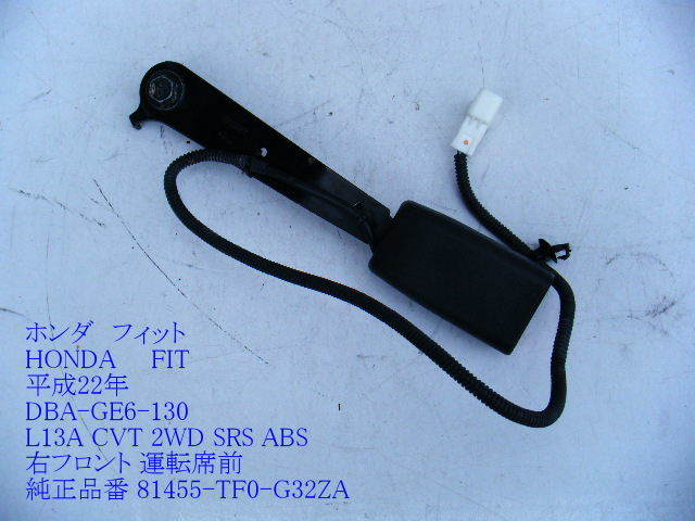 > ◆GE6 ホンダ フィット FIT 22年 右フロント シートベルトバックル キャッチ 受け 運転席前 81455-TF0-G32ZA 即決 [11349]