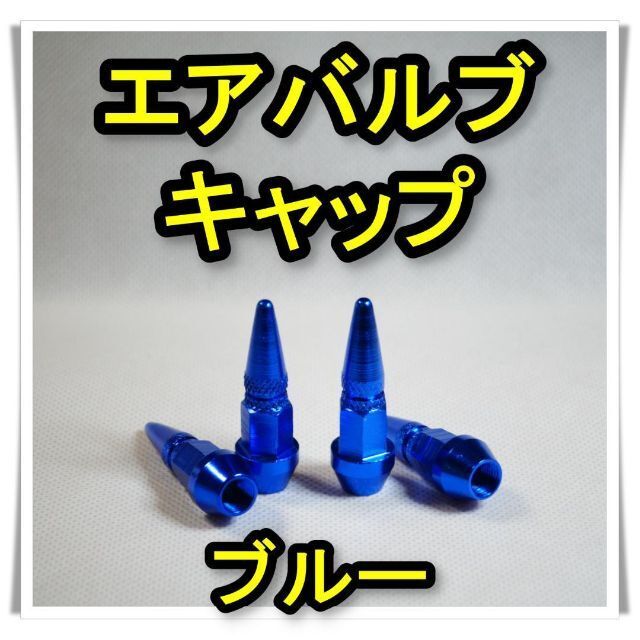 - エアバルブキャップ 4個 (ブルー)スパイク型 アルミ ロング アルミ削り出し