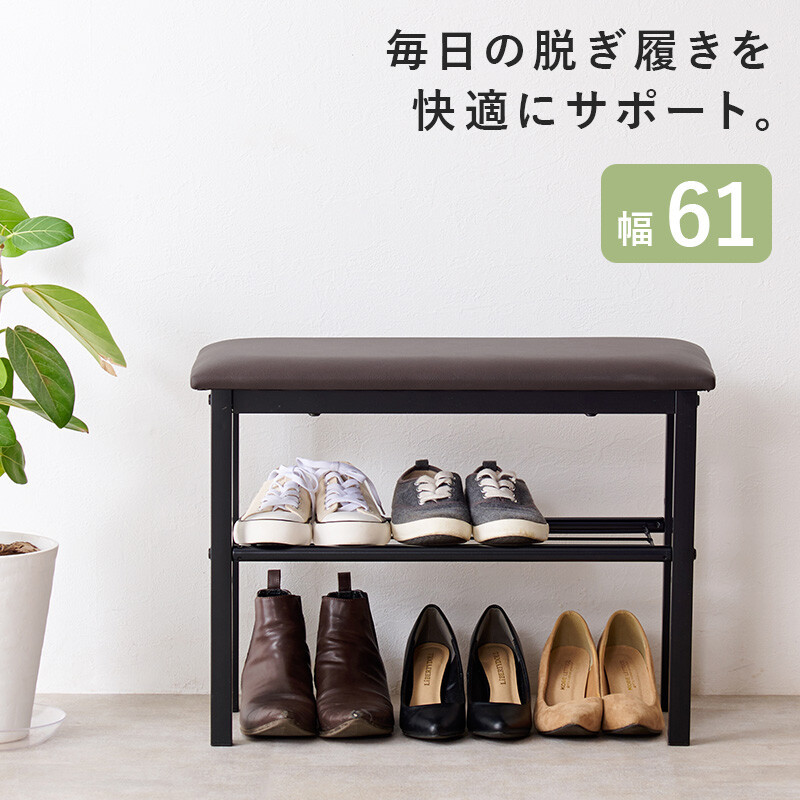 - 玄関ベンチ VB-7936BK ブラック 幅61 (玄関ベンチ シューズラック 玄関ラック ベンチ 靴箱 ちょい掛け 腰掛)