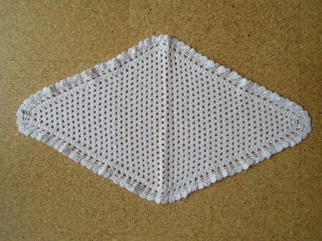 ブルガリアの手編みレースのひし形マットです。テーブルセンターや花瓶敷、椅子の背カバーなどにどうぞ。在庫は2枚ですが、手作りのため若干の違いがあります。