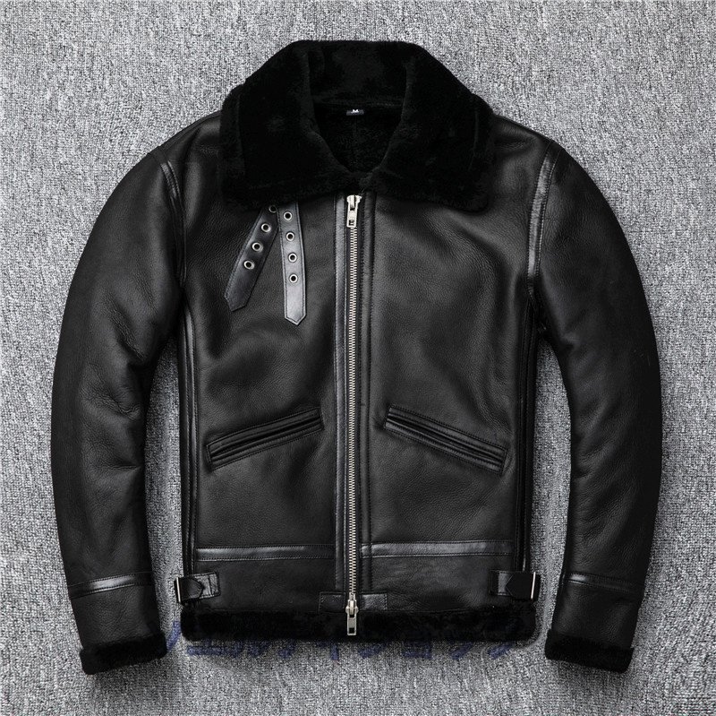 - 超人気★フライトジャケット ムートン 羊革 シープスキン 毛皮一体 天然革 肉厚 コート メンズファッション 本革 2.5cm 防寒 S~3XL