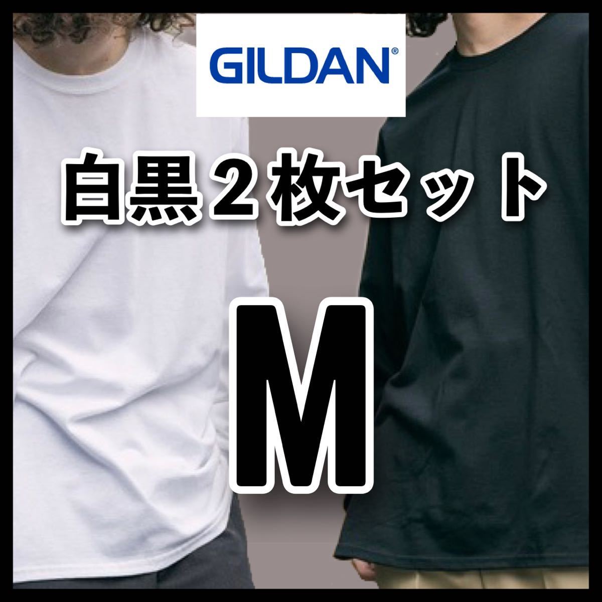 - 新品 ギルダン 6oz ウルトラコットン 無地長袖Tシャツ ロンT 白黒2枚 M