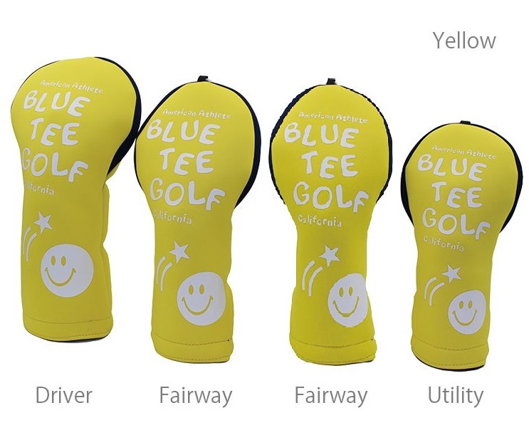 - ◎『HC34タイプ』ブルーティーゴルフ【4Pイエロー:ストレッチスマイル】4本セットヘッドカバー HC-34 BLUE TEE GOLF 送料無料