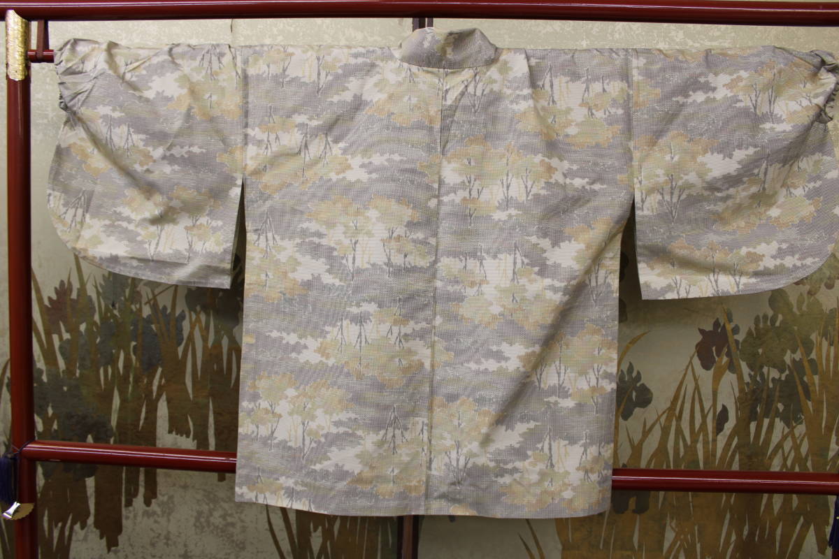 - きもの今昔5282 おしゃれコート 引っ張りコート 大島生地 広衿袖口絞り仕立 未使用に近い