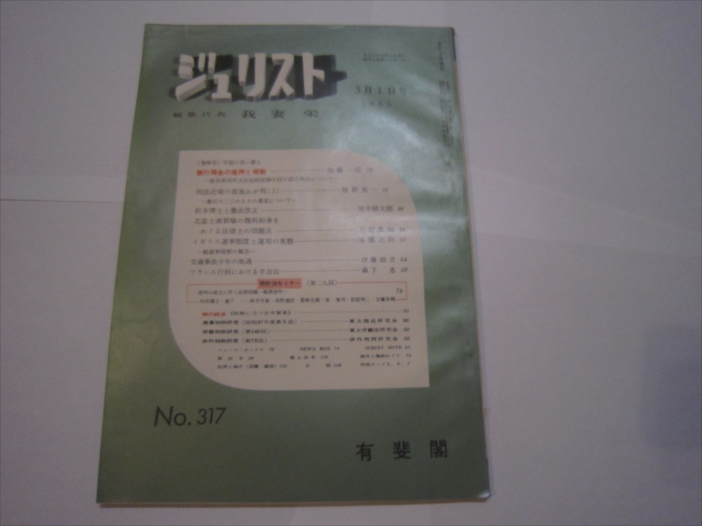 - ジュリスト 1965年3月1日号 No.317 我妻栄(編) 有斐閣 銀行預金の差し押さえ相殺