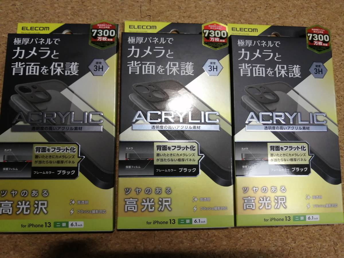 - 【3枚】エレコム iPhone 13 6.1inch 2眼 用 背面保護アクリルパネル クリア×ブラックフレーム PM-A21BFLGGUFBK 4549550226561
