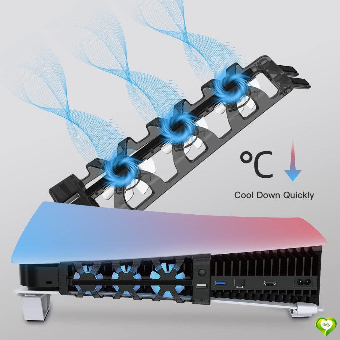 - PS5 水平スタンド 冷却ファン Playstation5 ディスク & デジタルエディション 対応 LEDライト内蔵 USBポート増設 ハイパワー 排熱 白