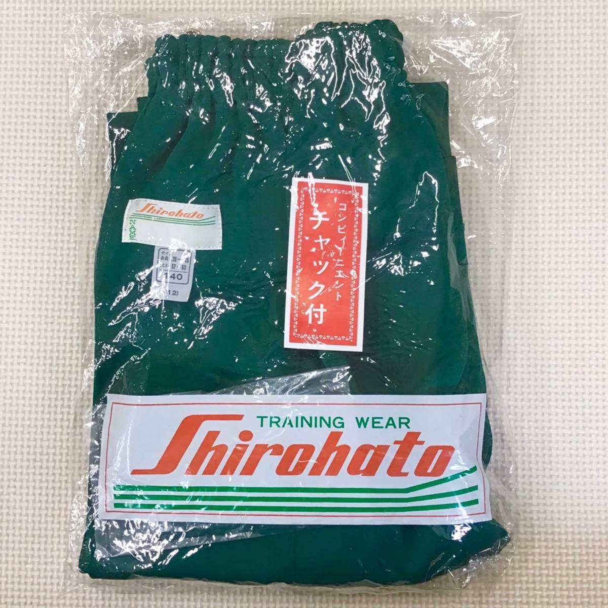 > (M)325 新品【Shirohato】シロハト ロングパンツ 140 /長ズボン/緑/裾ゴムタイプ/チャック付き/レトロ/体操着/運動着/小学生/児童/日本製