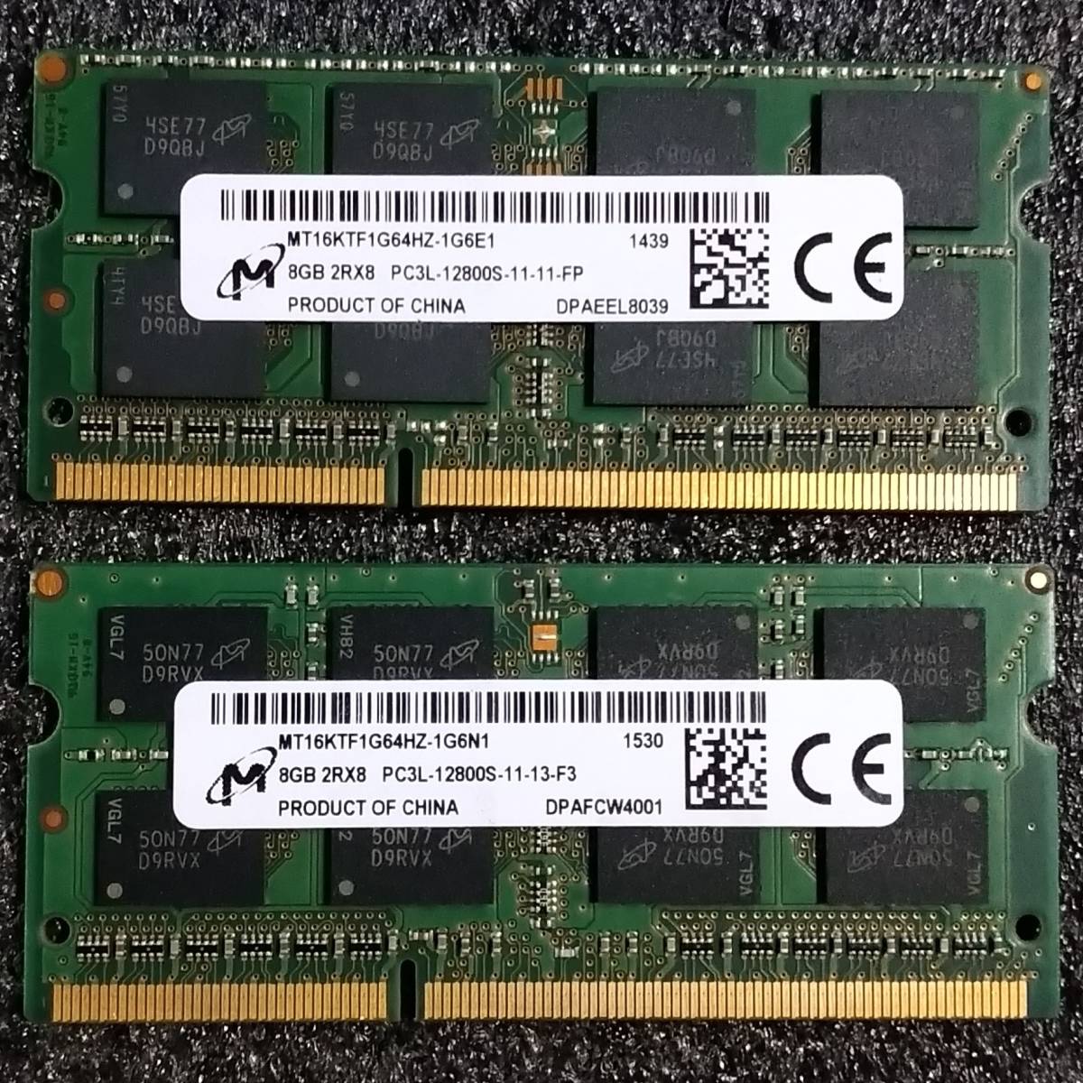 - 【中古】DDR3 SODIMM 16GB(8GB2枚組) Micron MT16KTF1G64HZ [DDR3L-1600 PC3L-12800 1.35V]