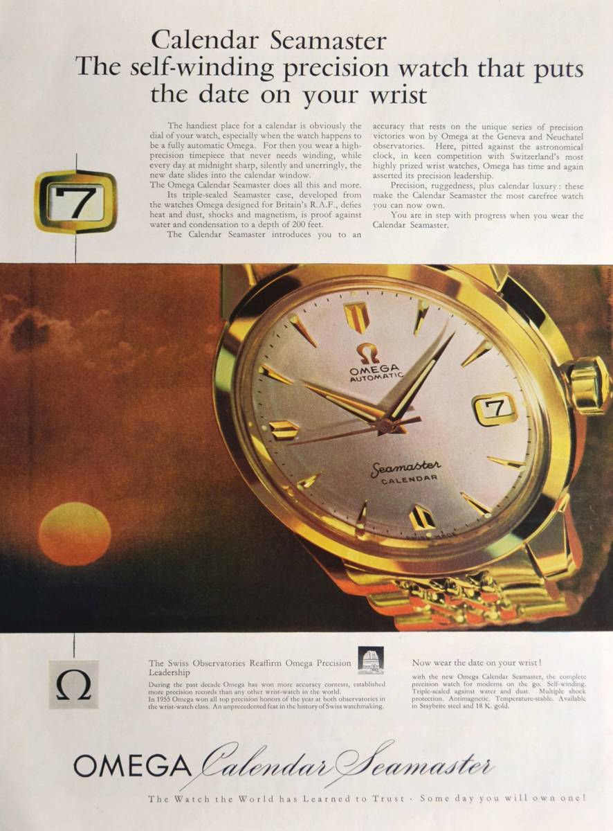 > 稀少・時計広告!1959年オメガ 時計広告/Omega Seamaster Calendar/Automatic Watch/R