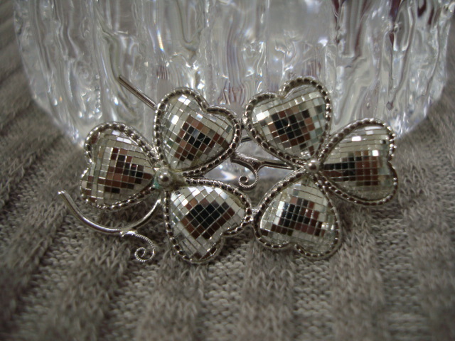 - シルバーカラー クローバー ブローチ ミラー 緑青有 ビンテージ