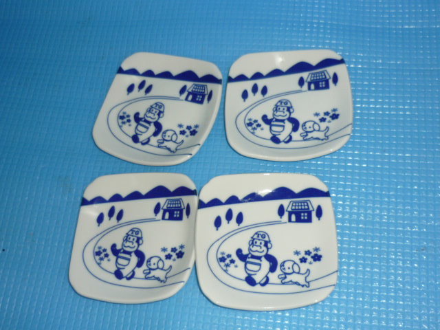 - b★未使用・非売品★トシン電機マスコット ゴリラのあんぷるくん たち吉製小皿4枚セット