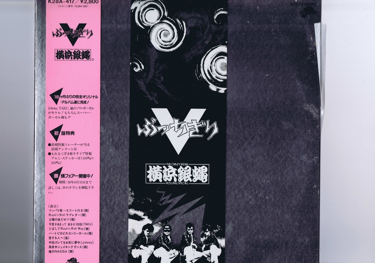 > 盤質良好 国内盤 LP The Crazy Rider 横浜銀蝿 Rolling Special / ぶっちぎり V 帯付 インサート付 ステッカー付き K28A-417