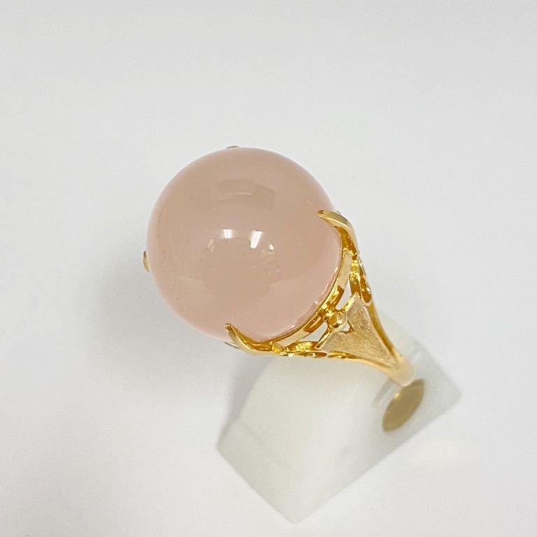 - 未使用 定価19.8万 K18 大粒 天然カルセドニー リング イエローゴールド 総重量8.7g