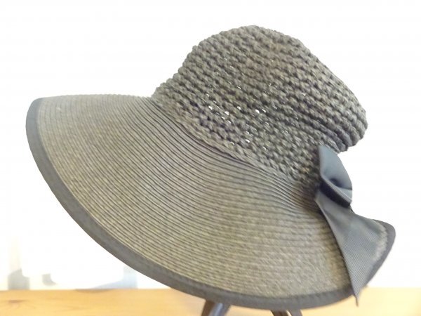 - ∩ 大同∪ レディース・婦人用 つば広ハット 黒色帽子 ペーパーハット サイズ57・5cm キャップ 帽子