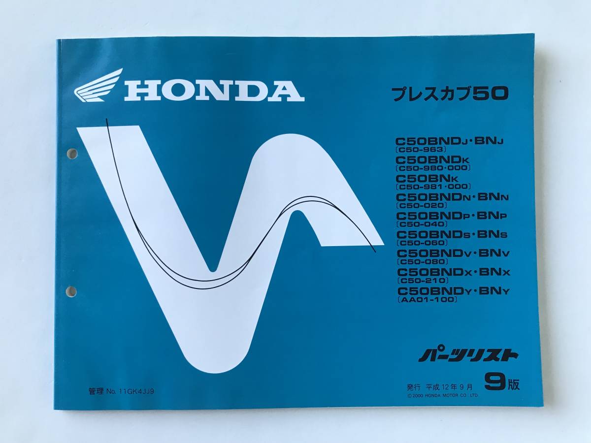 > HONDA パーツリスト プレスカブ50 C50BNDJ・BNJ C50BNDK C50BNK C50BNDN・BNN C50BNDP・BNP 平成12年9月 9版 TM8505