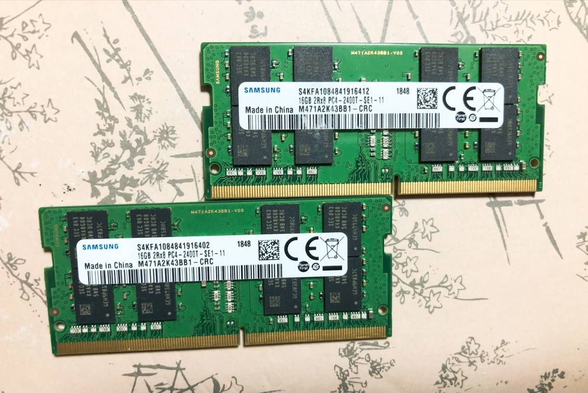 > SAMSUNG RAM 16GB 2Rx8 PC4-2400T メモリ 16GB×2枚 計:32GB ノートパソコン 用 動作品