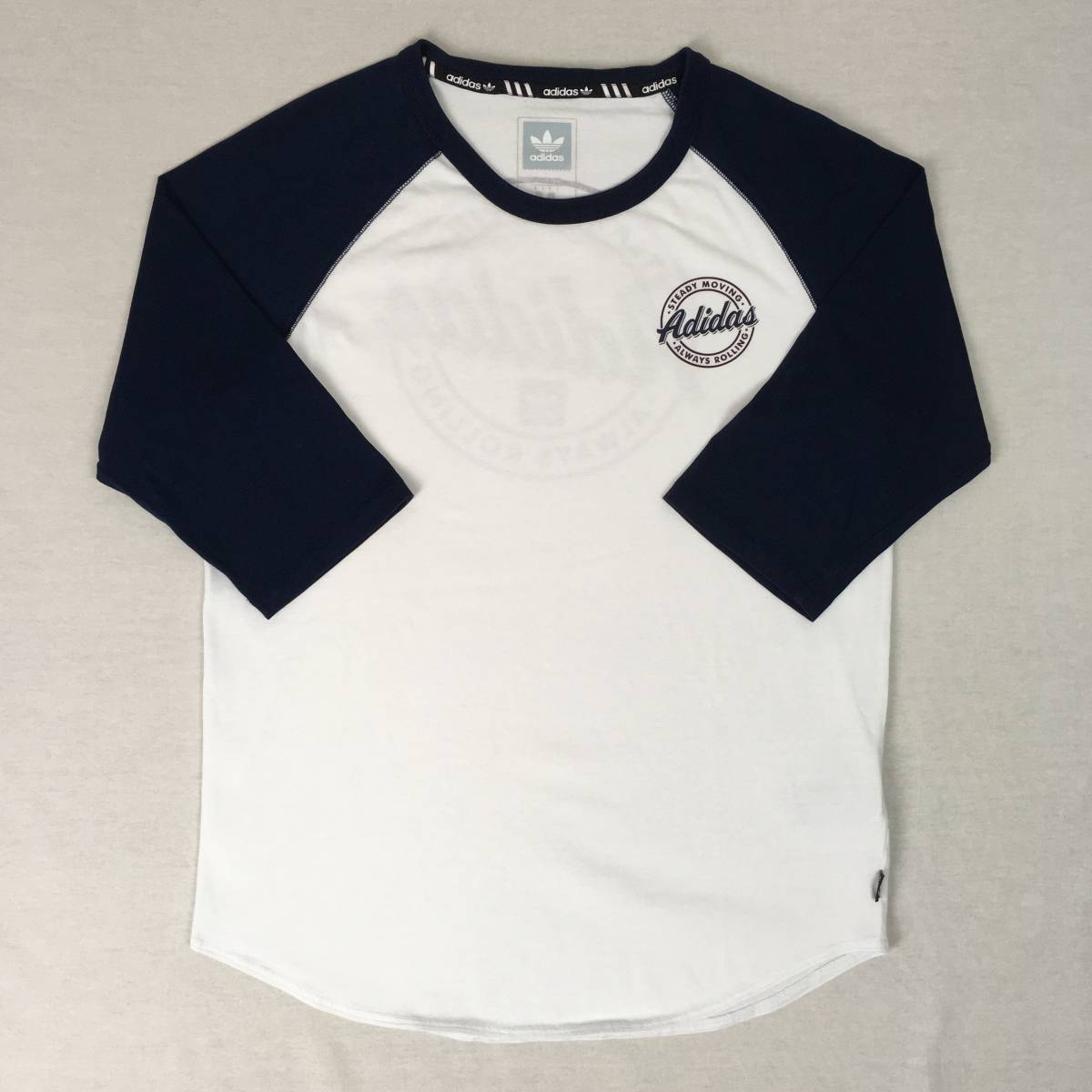 - 【美品】adidas アディダス 七分袖 ラグラン Tシャツ Oサイズ ホワイト/ネイビー AY8885