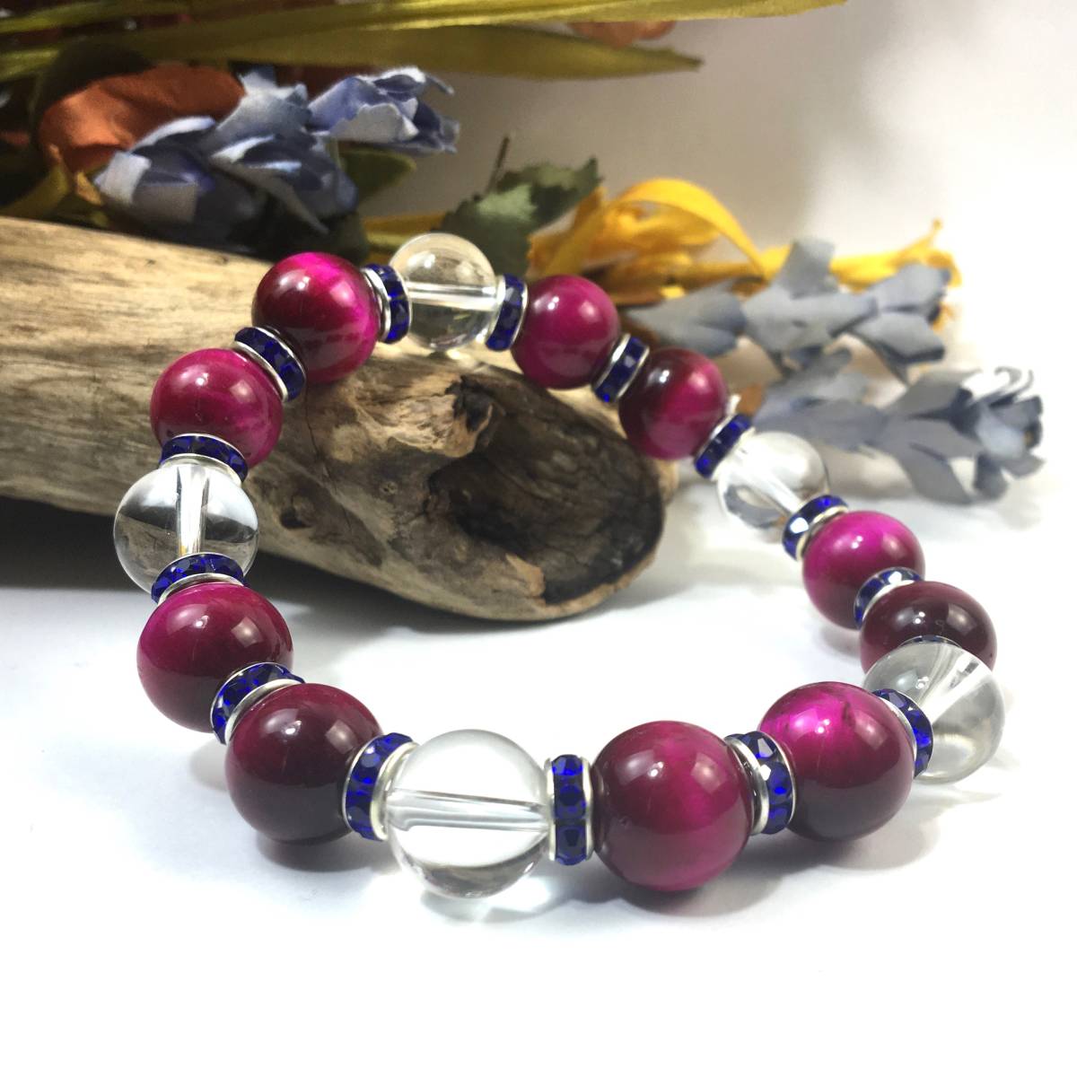 > ピンクタイガーアイ&水晶 パワーストーン ブレスレット 天然石ブレス (D.ブルー) 12mm 幸運 開運 メンズ 男性