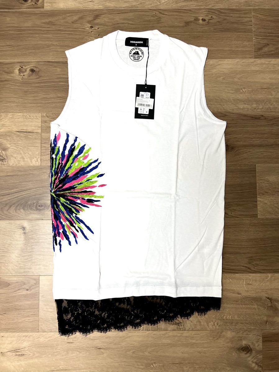 - 価格交渉可 未使用タグ付き DSQUARED2 ブラックレース付き ノースリーブ