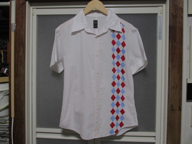 - ダイヤ柄 アーガイルシャツ AGATE LABEL ロカシャツ 白 L 日本製 ROCKNROLL ROCKABILLY HOTROD ヴィンテージスタイル