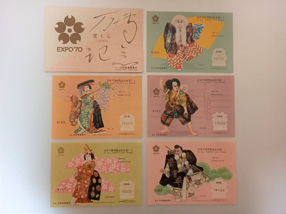 - レア 美品 1970年 日本万国博覧会 EXPO70 大阪万博 記念品 日本勧業銀行 宝くじ 桜花柄 マーク 歌舞伎 1組~5組セット