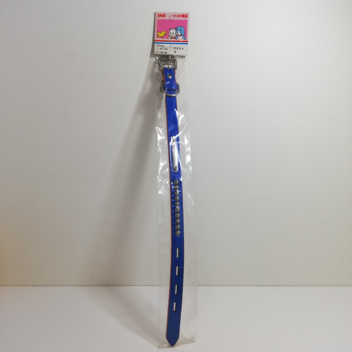 - 畜犬具 岡田製作所 OK印 一枚皮特A 首輪 ブルー 26cm~33cm 未使用品 [犬 ペット用品 革 皮 ]