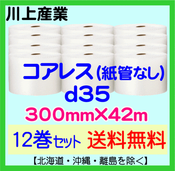 > 【川上産業 直送 12巻set 送料無料】d35 コアレスプチ 300mm×42m エアークッション エアパッキン プチプチ エアキャップ 気泡緩衝材