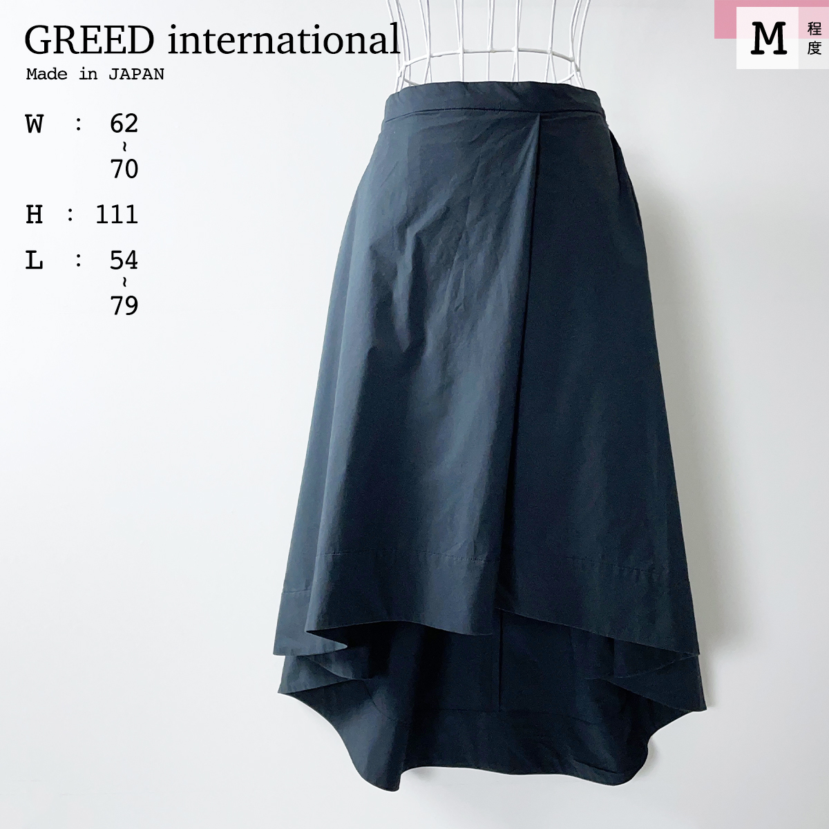 > GREED International ウエストゴム フィッシュテール フレア ロング スカート 紺 ネイビー 夏 コットン 綿 グリード インターナショナル M