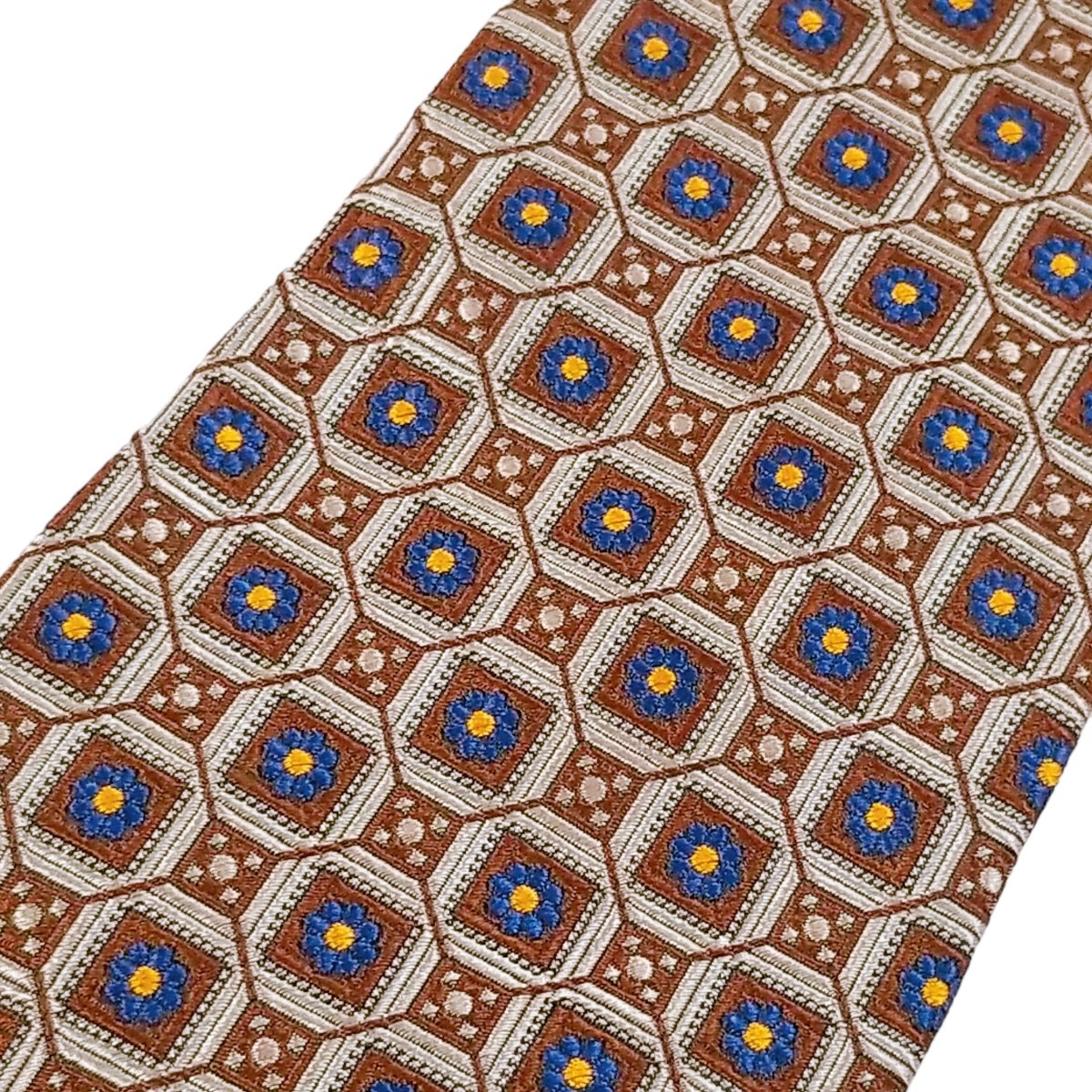 > 【新品・未使用】Ermenegildo Zegna ゼニア ネクタイ 絹 シルク100% イタリア製 花 総柄 ブラウン系 高級 上質 スーツ 小物 メンズ Y599