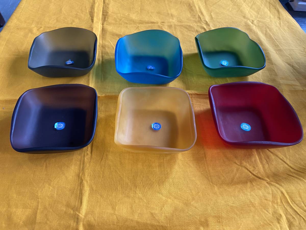 - ササキガラス SASAKI GLASS 6色皿 あめ色 昭和レトロ ガラス皿 箱有 箱汚れ有