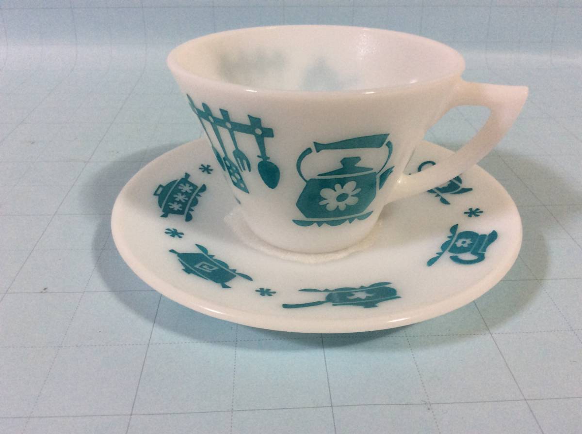 - Mid-Glassware/HazelAtlas/Kitchen Aids②】ヘーゼルアトラス/キッチンエイド/カップ&ソーサー/Ex+/ミルクグラス