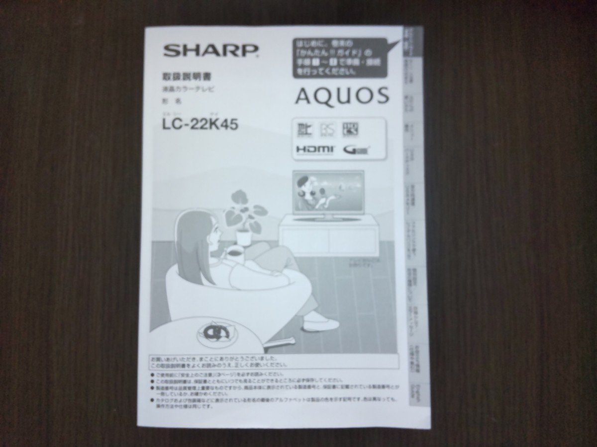 - シャープ SHARP アクオス AQUOS 液晶カラーテレビ LCー22K45 取扱説明書