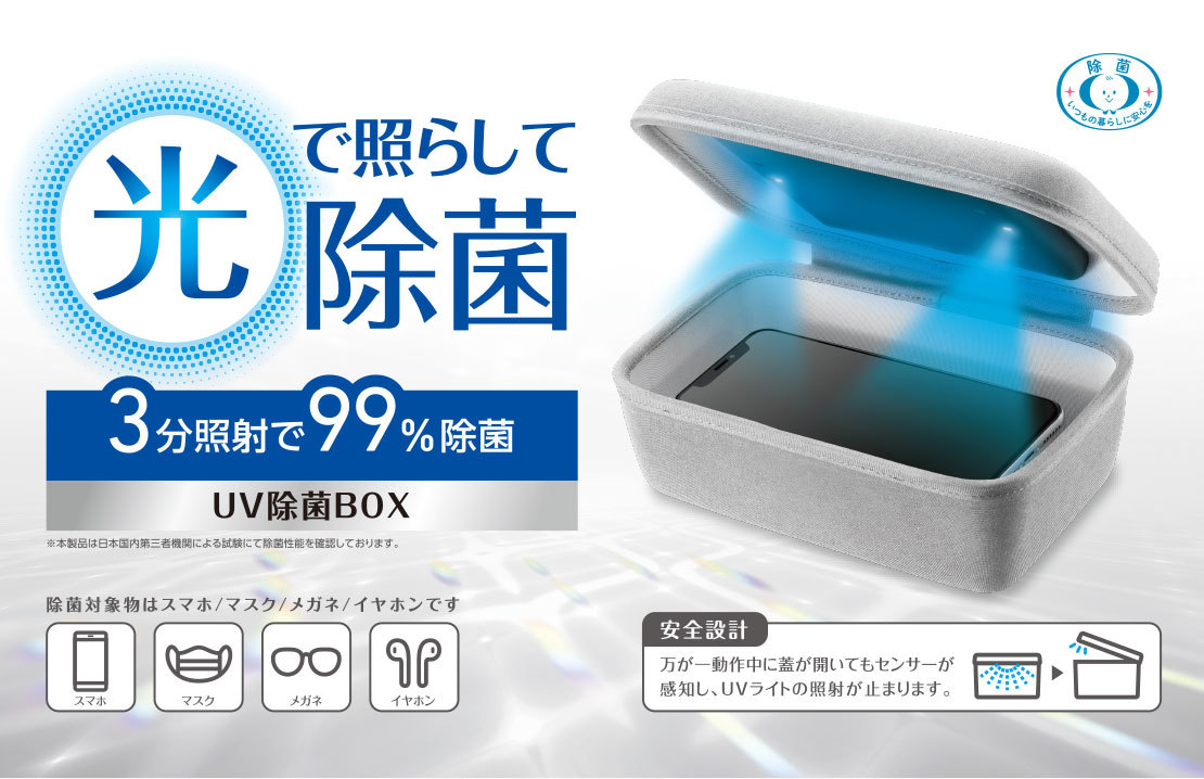 - ■ELECOM 光で照らして除菌 UVライト照射 UV除菌ボックス ライトグレー IPM-UVRB01GYL