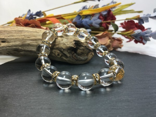 - パワーストーン ブレスレット 水晶 12mm 天然石ブレス ゴールド 開運 浄化 数珠ブレス メンズ 男性