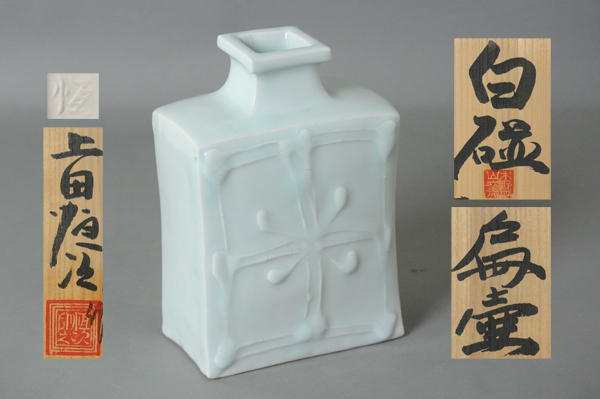 - ∞ 南 美 ∞【 上田恒次 白磁 扁壷 共箱付き】 高さ約18.8cm 京都 師:河井寛次郎 木野皿山窯 壺