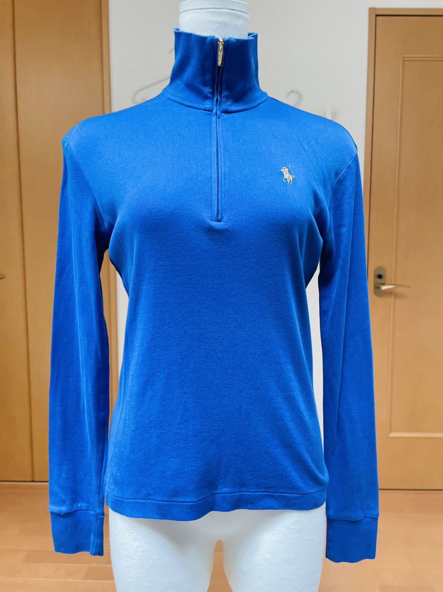 > ラルフローレンゴルフ 青ブルーハーフジップ長袖トップスS美品 RALPH LAUREN GOLF (株)ナイガイ ゴールドロゴ