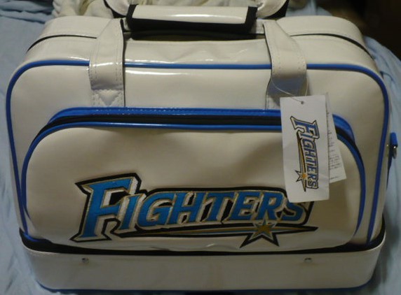 - 新品紙タグ付きLEZAX(株)レザックス製日本ハムファイターズロゴ入り二段式(ゴルフ?)ボストン(エナメル?ショルダー?)バッグ白×青 NFBB-6272