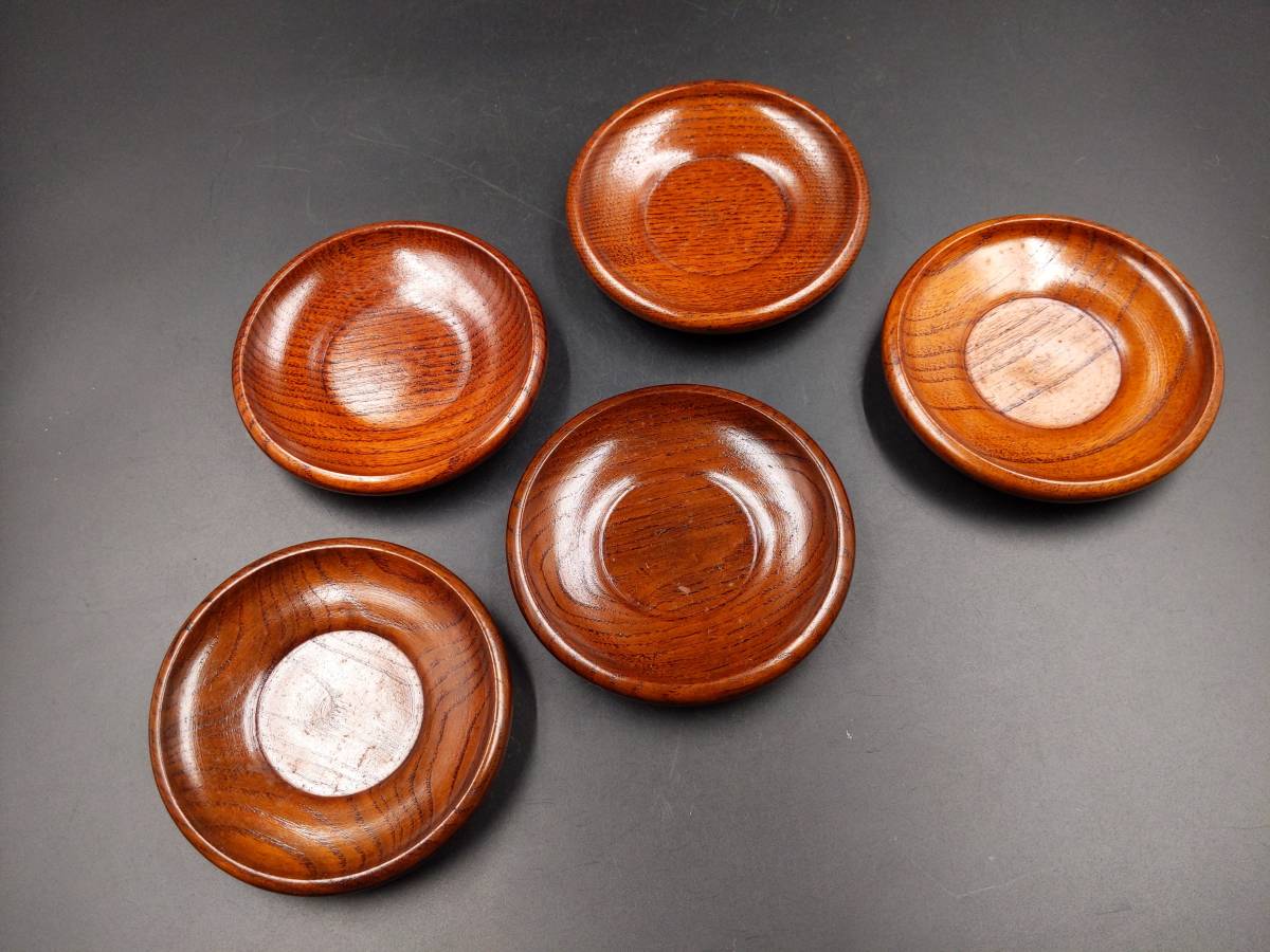 - C28 掘り出し物 茶道具 木製 茶托五枚 未使用◇湯呑 急須