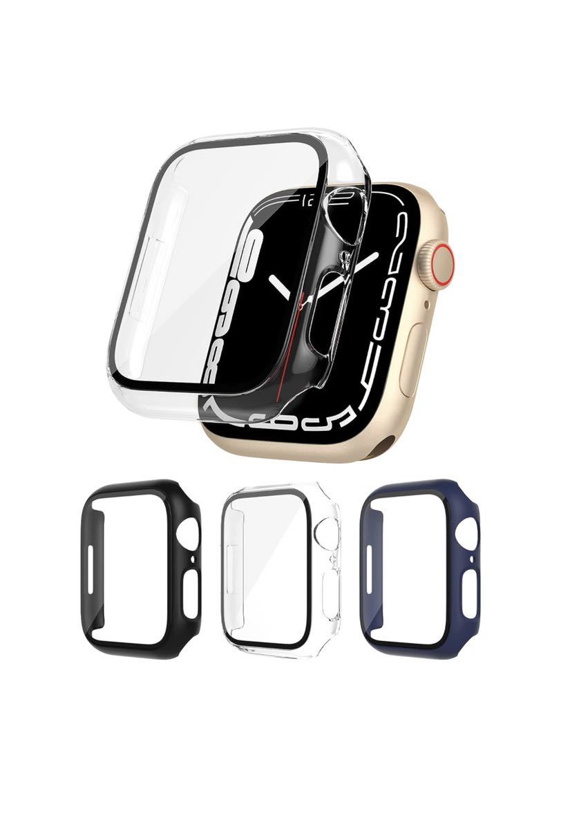 - Apple Watch Series 8 / 7 41mm用 ケース アップルウォッチ保護カバー 超薄型PC素材 強化ガラスフィルム保護カバー 3枚セット