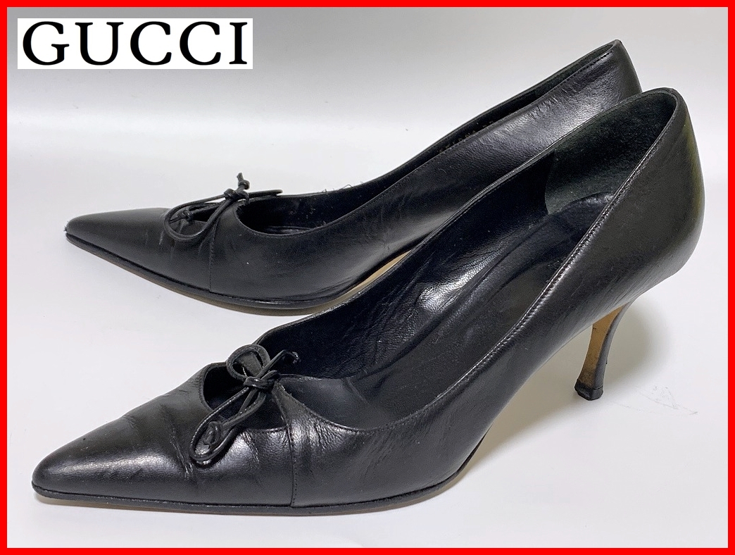 > 即決 GUCCI グッチ 37≒23.5cm パンプス 黒 ブラック レザー レディース jtu