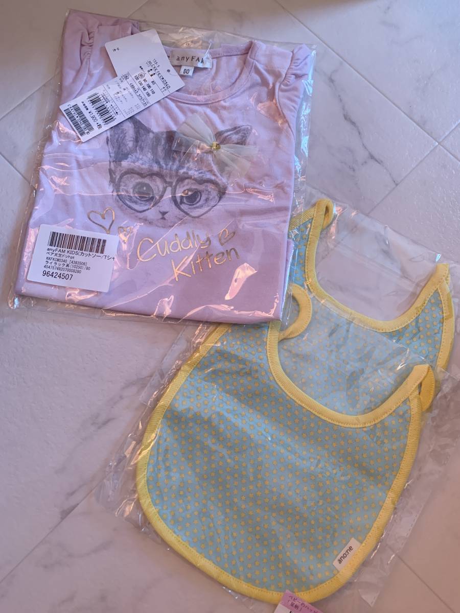 - 新品未開封 ★子供服★ かわいい猫ちゃんのTシャツとスタイ2枚のセット ピンク 紫 80サイズ 女の子