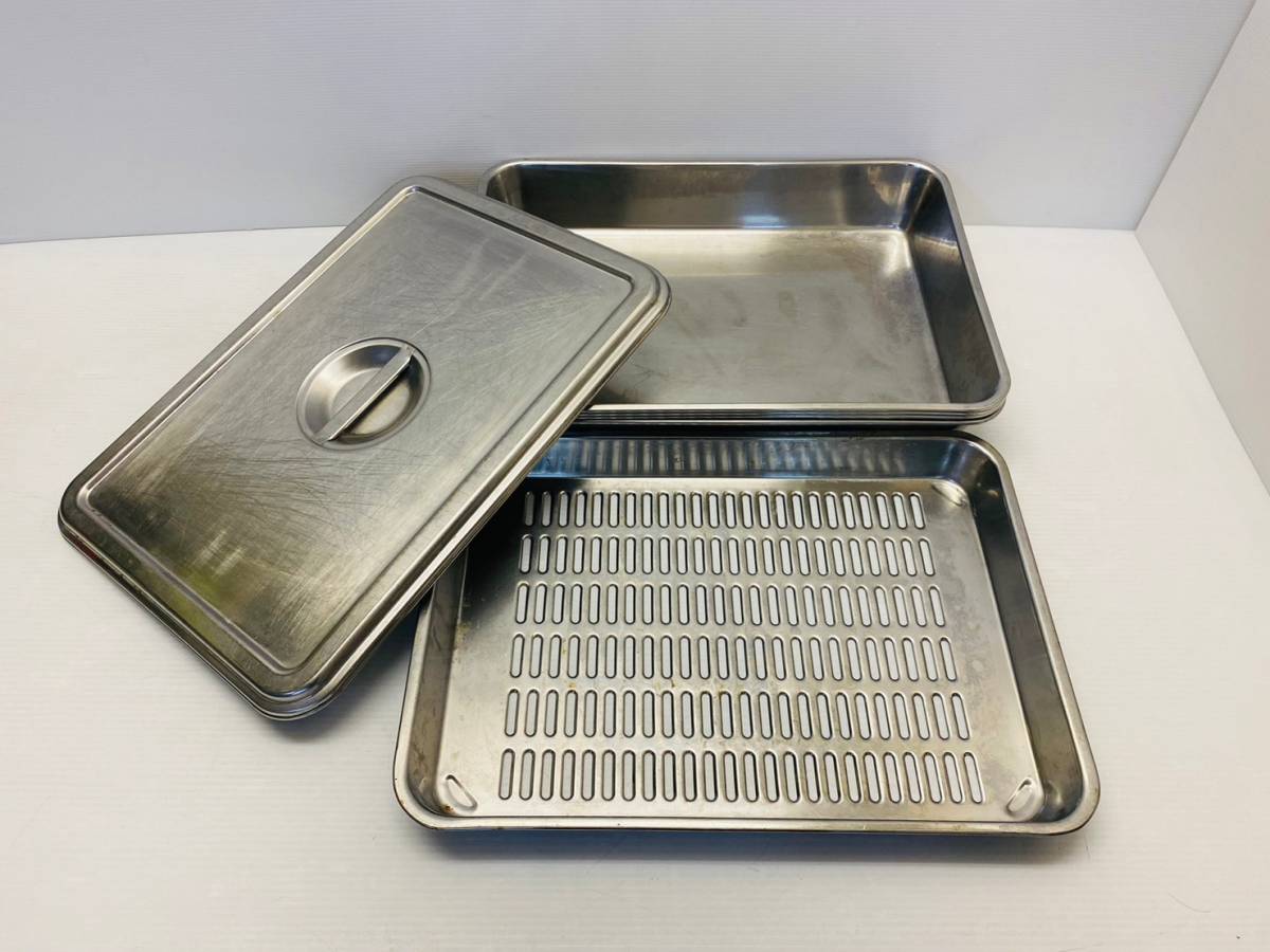 - な771-1 バット・ステンレス・あみ・ふた付 まとめ売り6点セット W290×D410×H65 飲食店/厨房/店舗/業務用
