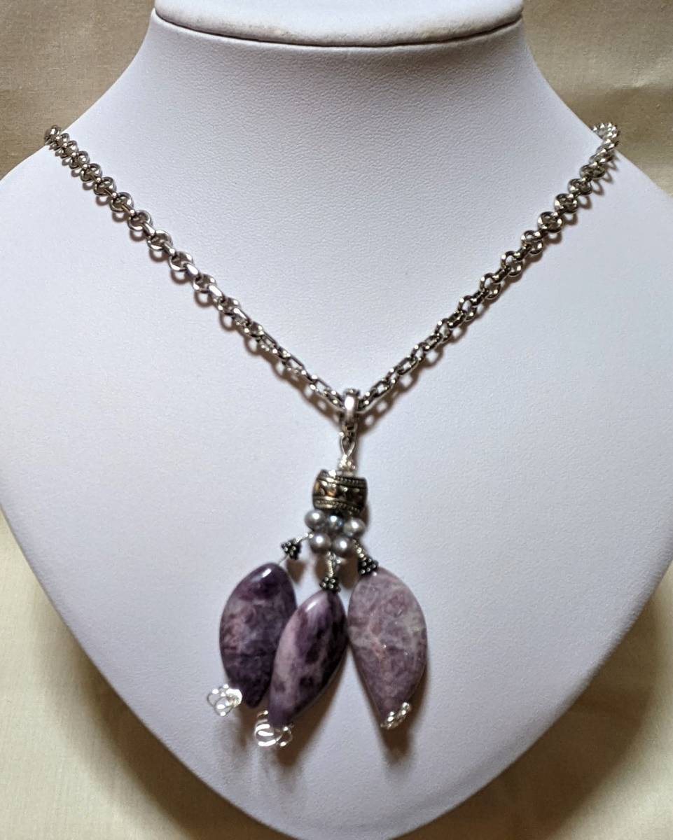 - F33★天然石★パープルカルセドニー★パワーストーン 3トップネックレス レディース チェーン50cm 展示品★半額★